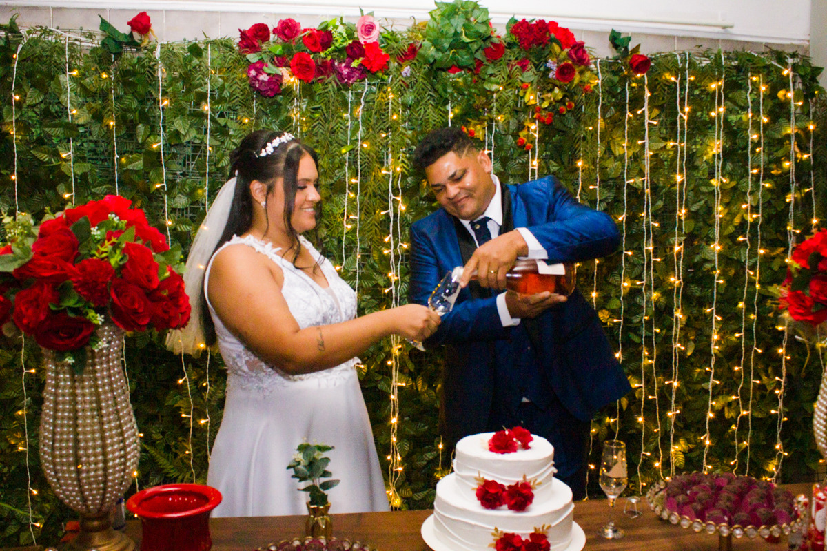 A combinação da decoração vermelha, que simbolizava a paixão, com a personalidade única de ambos, fez do casamento de Piettra e Carlos um evento cheio de significado e sentimentos. Os amigos e familiares que estavam presentes compartilharam sorrisos, lágrimas de felicidade e muitos momentos que ficarão guardados para sempre na memória.