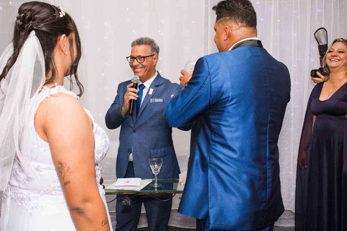 A cerimônia maravilhosa contou com a celebração do Juiz de Paz e Celebrante Enéas Rachid de Goés, que conduziu o casamento com maestria e fez o cerimonial dos vinhos para simbolizar a união desse lindo casal.